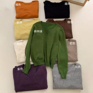 • Belknt-Maturity V Neck Pullover Knitted Top for Women-9 Colors Two Pieces Sweater Coat for Lady