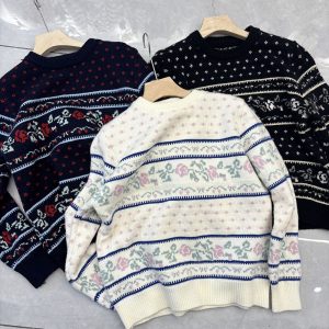 • Belknt-Korean Version Flower Jacquard Weaving Pullover Knitted Sweater Top for Women-Quality Loose Round neck Knit Coat-