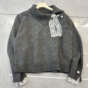 • Belknt-Korean Solid Irregular Pullover Knitted Sweater Top for Women-Gray Lace Stars Buttons Knit Coat