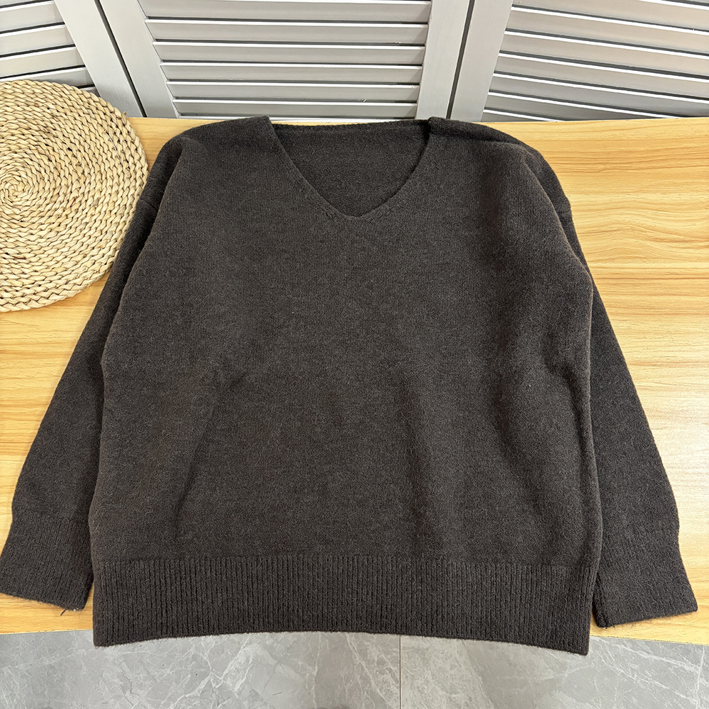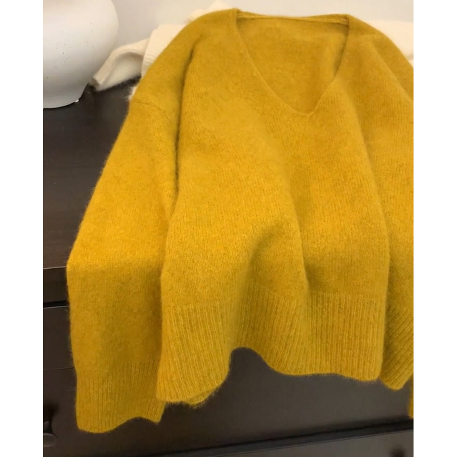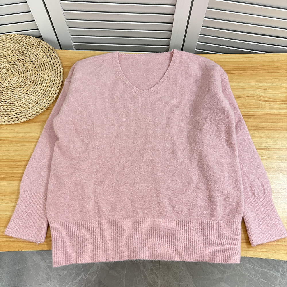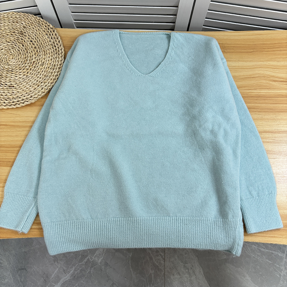 Belknt-V neck Sweater Over the Knee Knitted Top for Women-Korean Style Pullover Sweater Outwear for Lady
