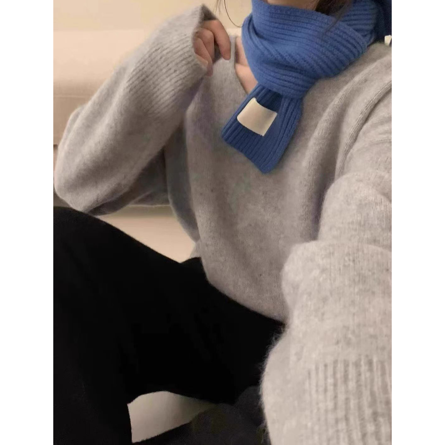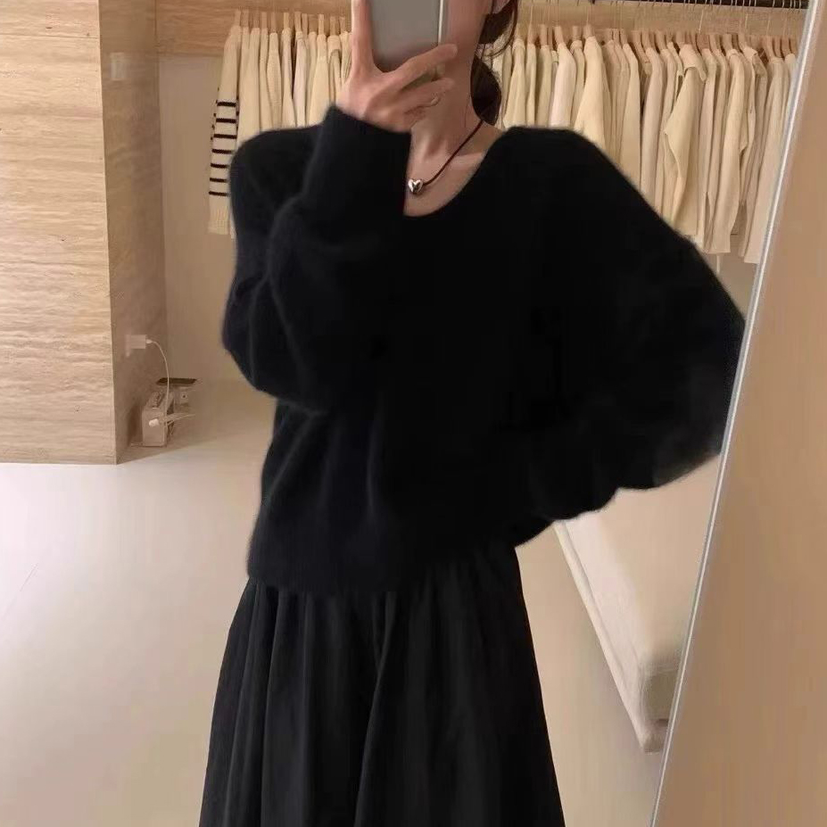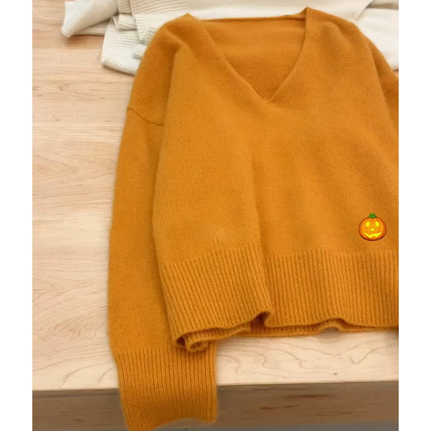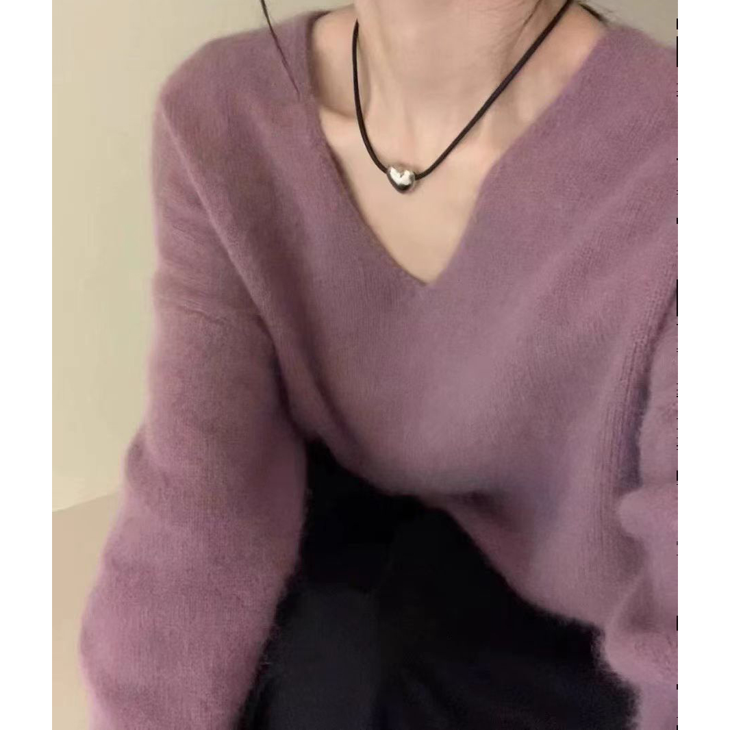 Belknt-V neck Sweater Over the Knee Knitted Top for Women-Korean Style Pullover Sweater Outwear for Lady