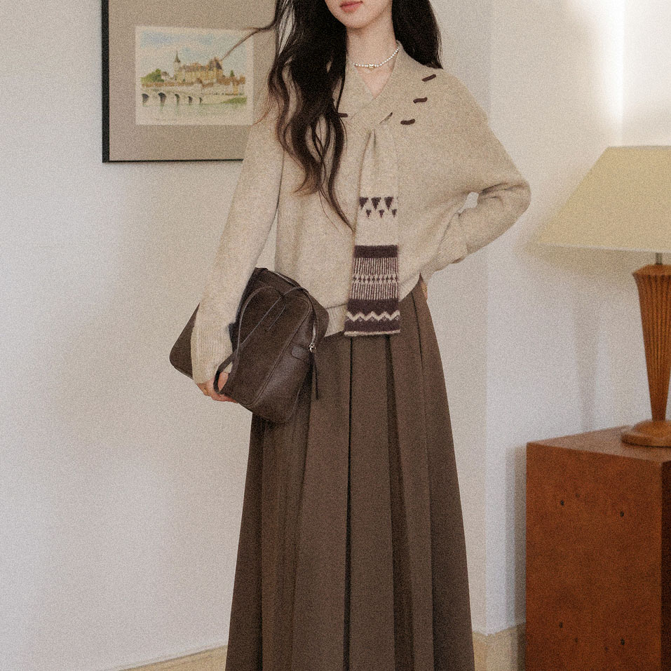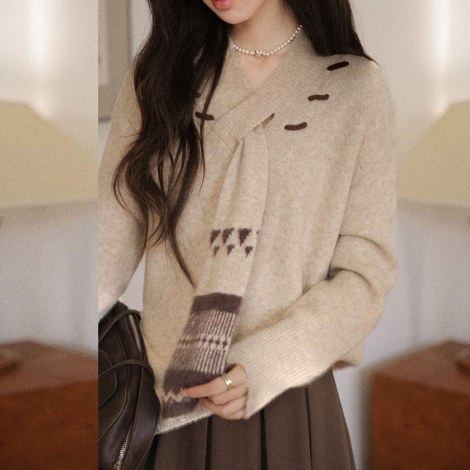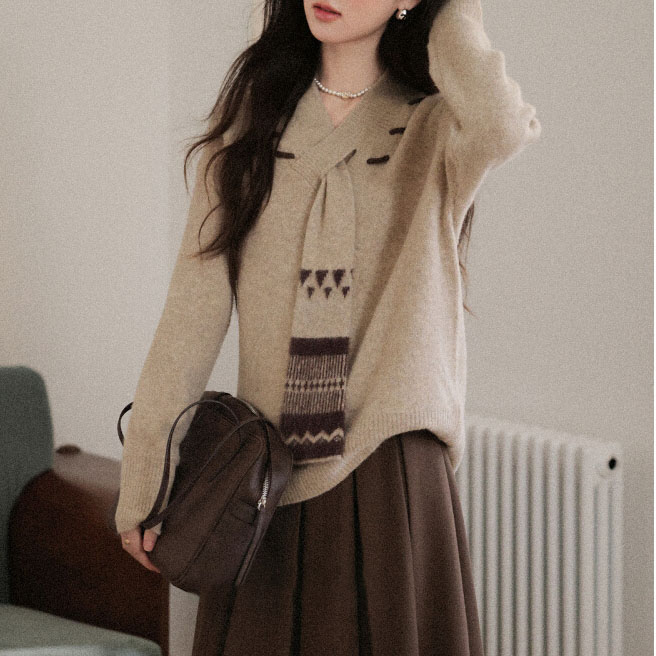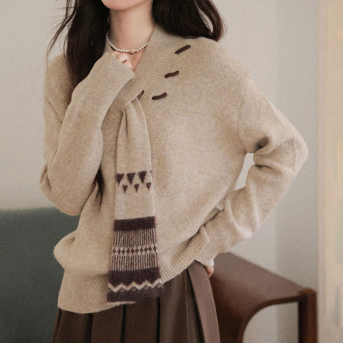 Belknt-Design Sense Solid Cowl Neck Pullover Knitted Sweater Top for Women-Handmade Wearing Rope Knit Coat-