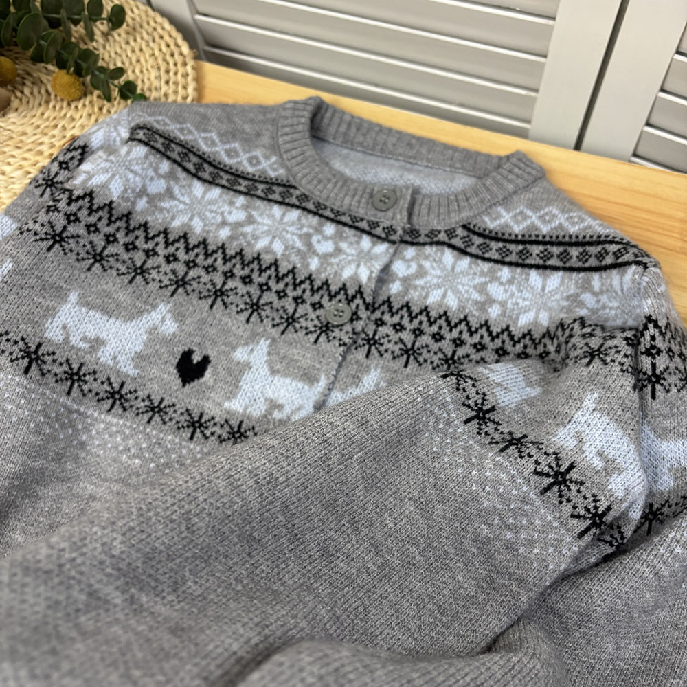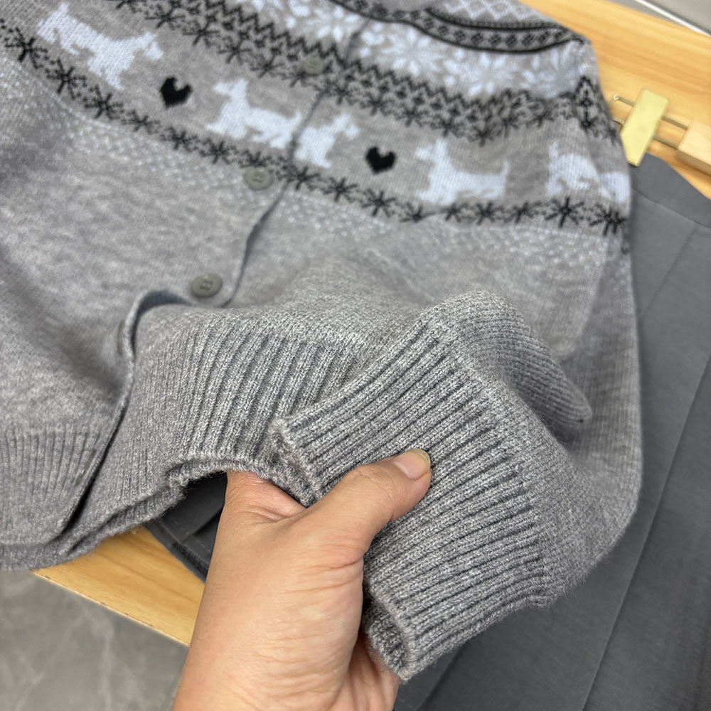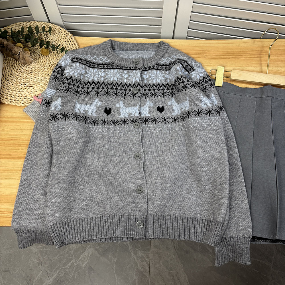 Belknt-Fair Island Gray Knitted Cardigan Knitwear for Women-Round neck Thin Sweater Short Coat-Retro Knitted Tops Outfit