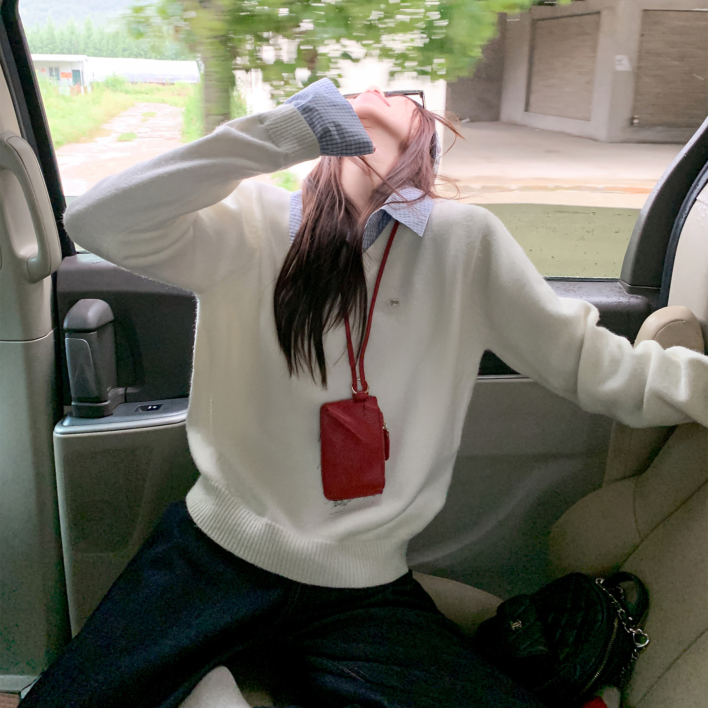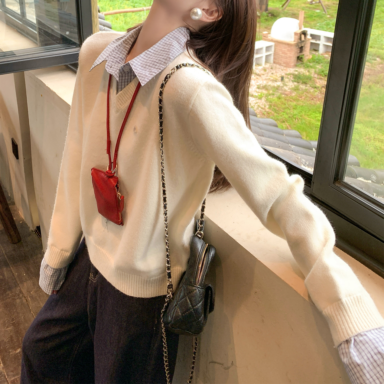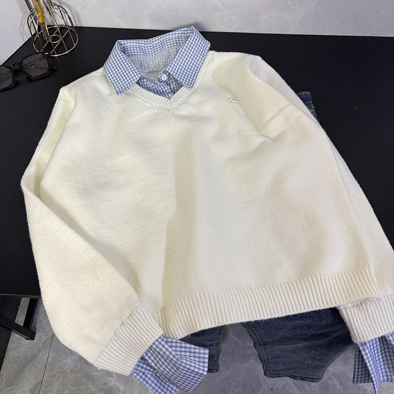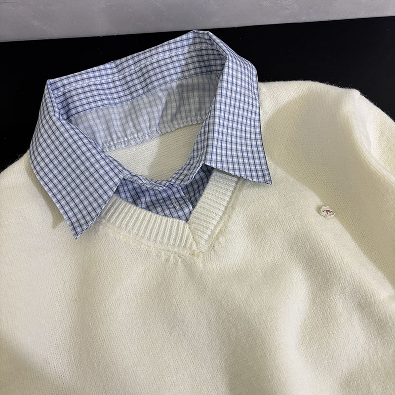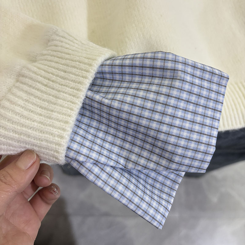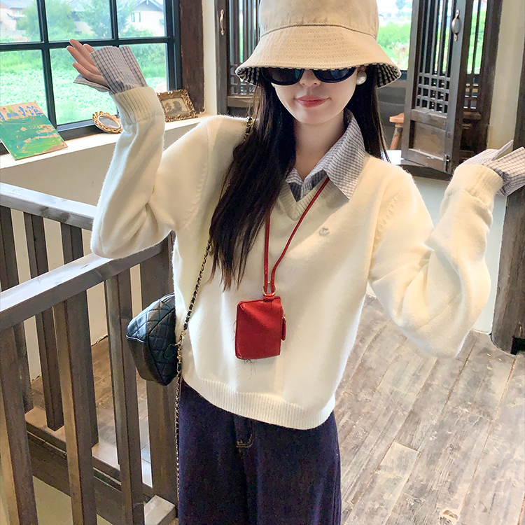 Belknt-Two Piece Pullover Knitted Top for Women-Not Divisible Shirt Collar Thin Sweater Short Coat-Smile Face Decoration Clothing