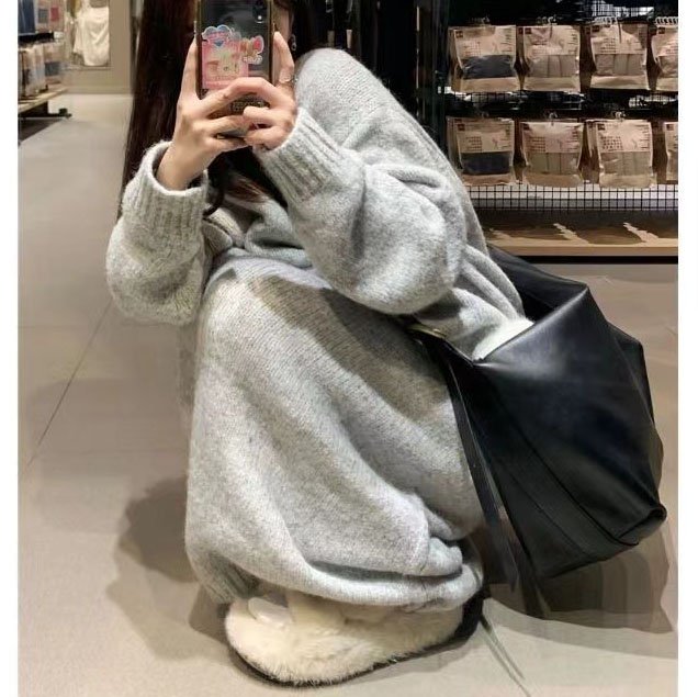 Belknt-Women‘s Knitted Dress-Pink V neck Pullover Sweater Over the Knee-Straight Silhouette Outwear Tops