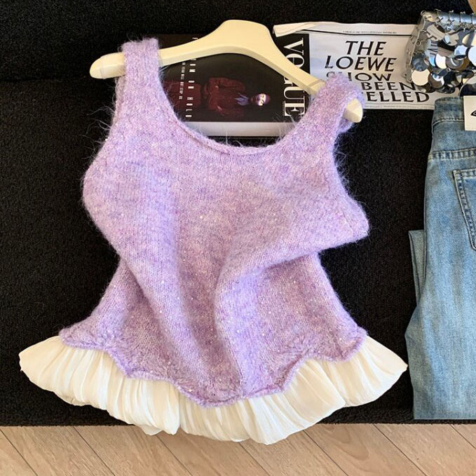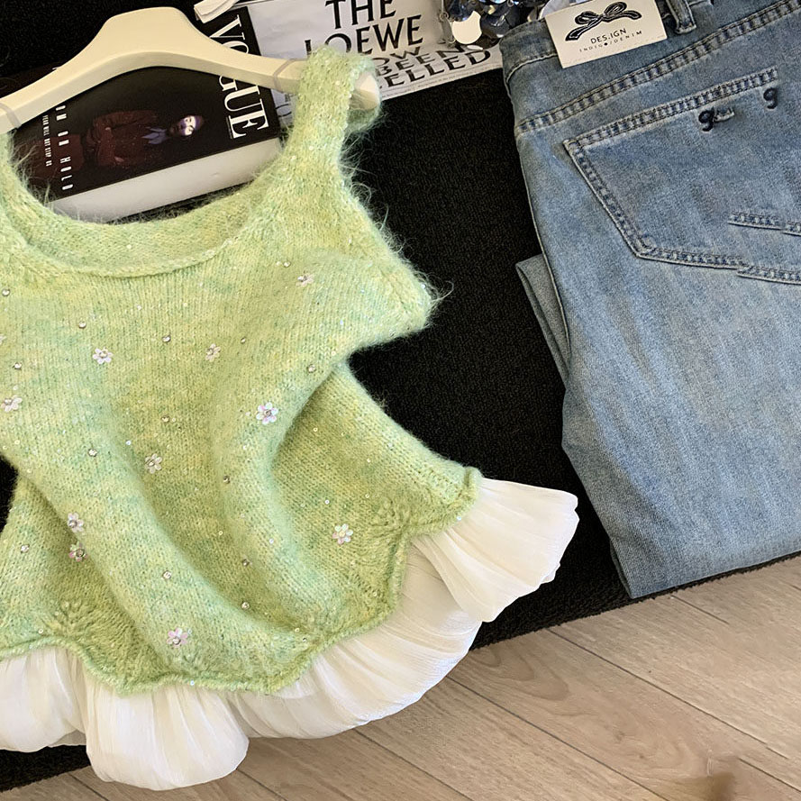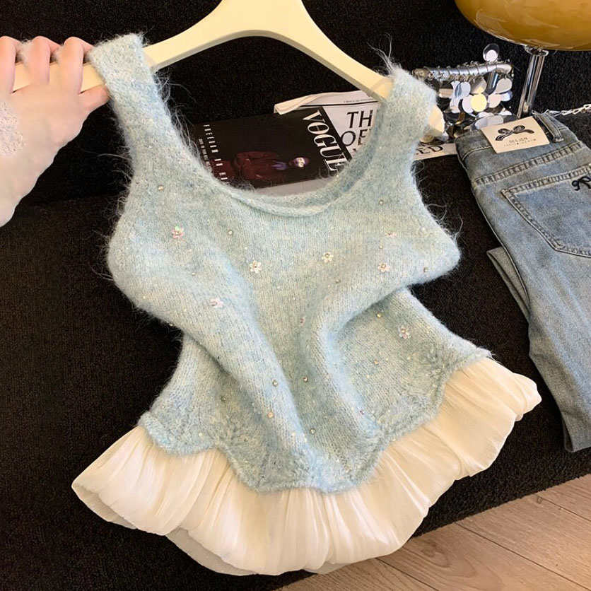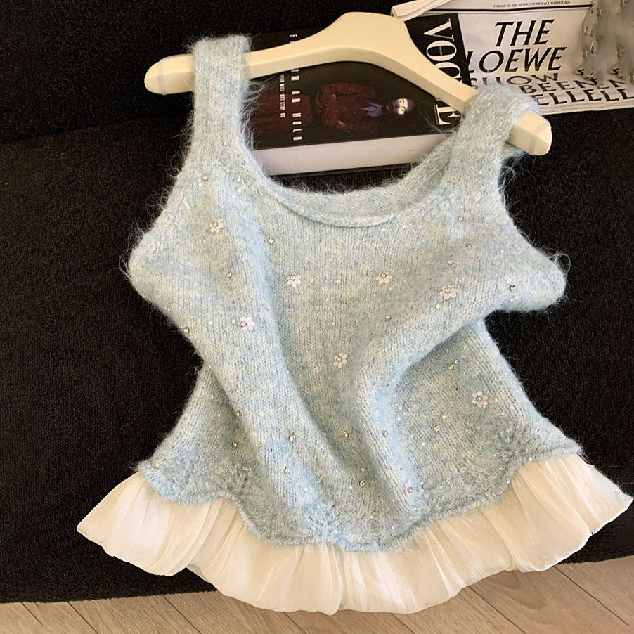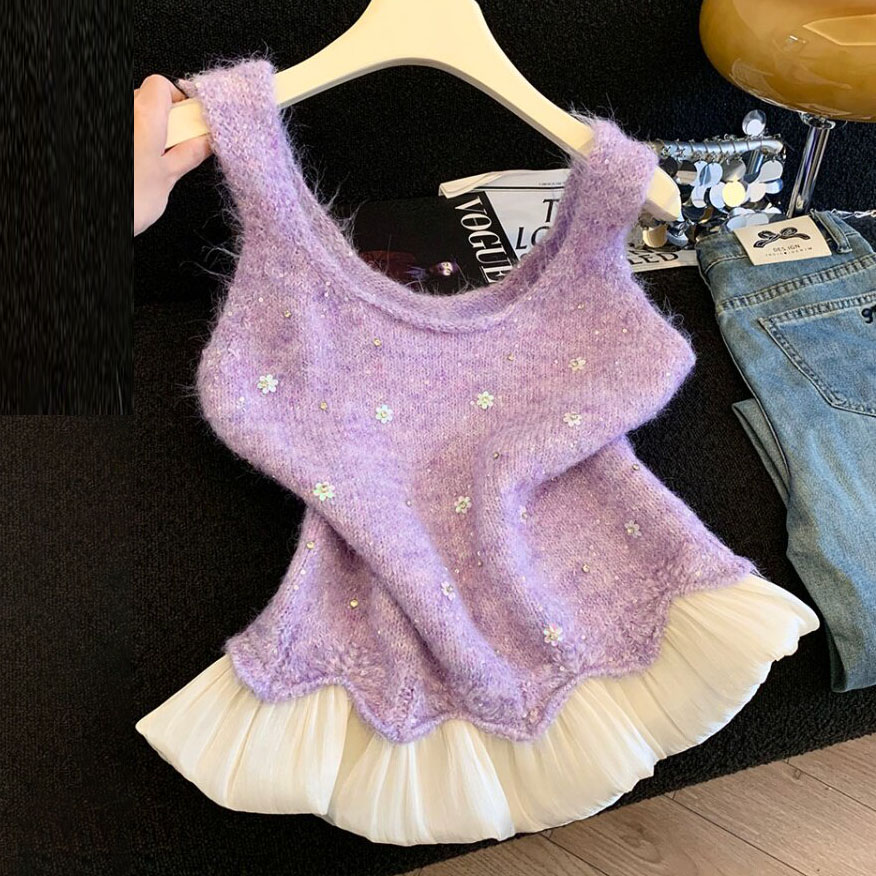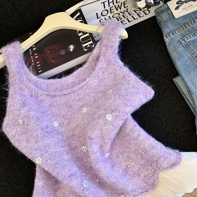 Attractive,Gentle,Sleeveless knitted vest,Flower Sequins Pullover,
